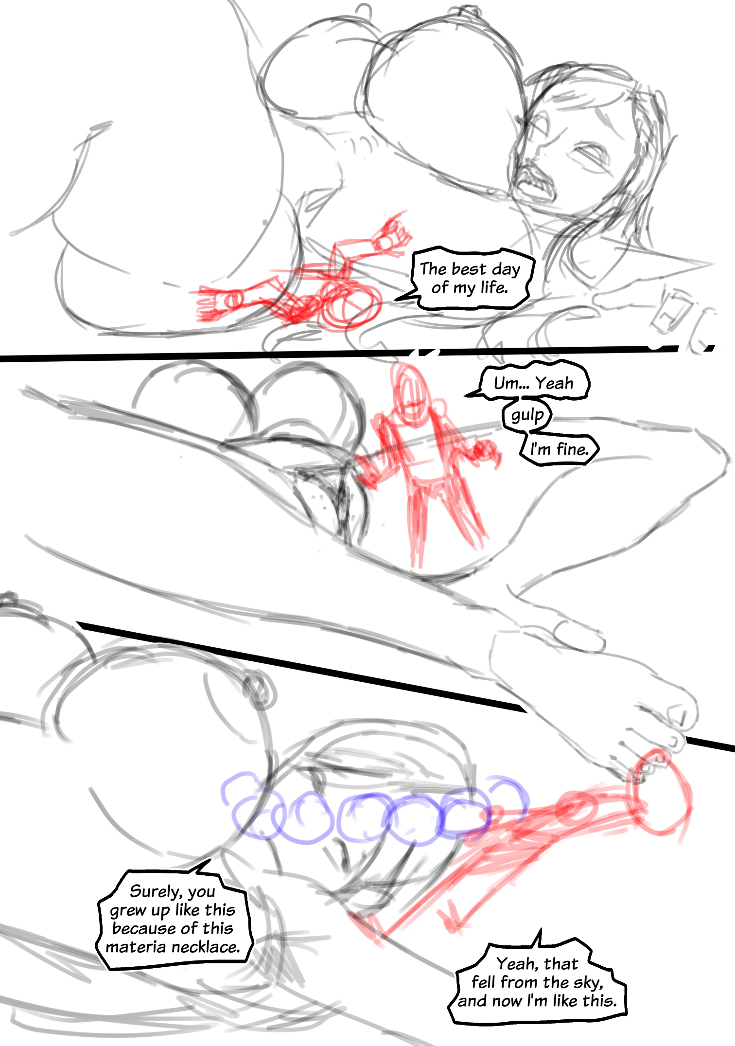What I have for you are the previews of the last pages of Aerith & Tifa. At this point, it’s Aerith’s turn to show some skin, based on your votes. I will soon be uploading these finished images. And now the voting is going to get interesting.