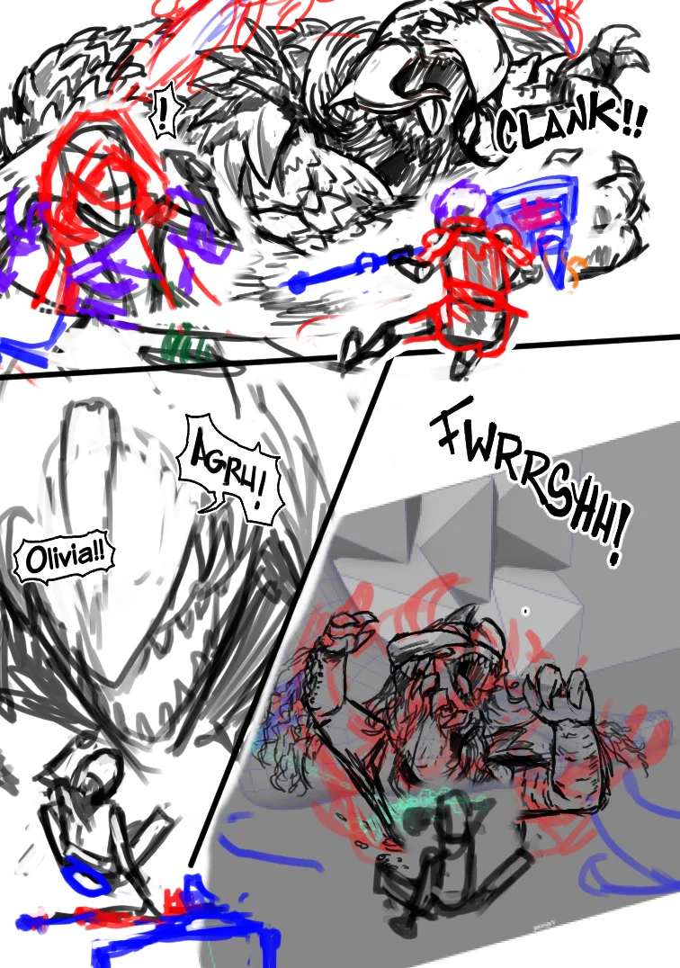 I think the sketches show quite a bit like a storyboard, and I’ll also show the stages of page 9.