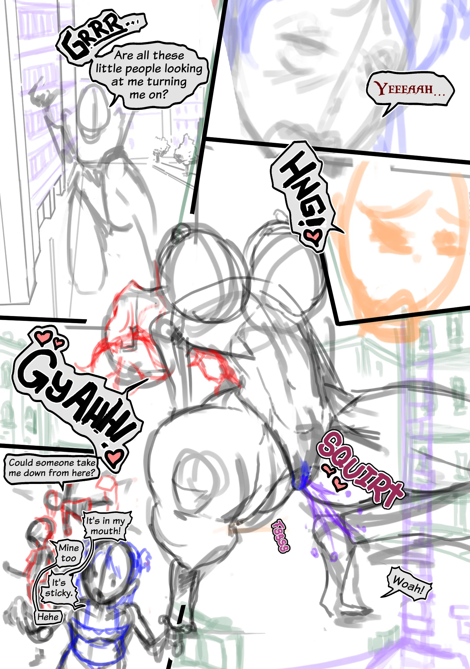 It came from combining several ideas. Part of me believes that some of the best artists out there work in porn because they have to make the skin look tight and squeezed, the sweat, and fluids stand out. And those who do it well sell the idea very well. I want to be able to do that with my giant girls too.